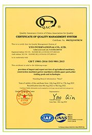 At YTO, providing high quality construction equipment and farm equipment is our goal. To do this, we have established our technology center, introduced highly automated equipment, and applied a thorough quality control system to monitor each phase of manufacturing, from raw material acquisition, through production, to the delivery to our customers. In addition, we produce our products strictly in accordance with the related environmental standards. As a result, our company has received the ISO9000 and ISO14000 certificates, and our products have been awarded the E-mark, OECD, CE, EPA, and CCC certificates as well.