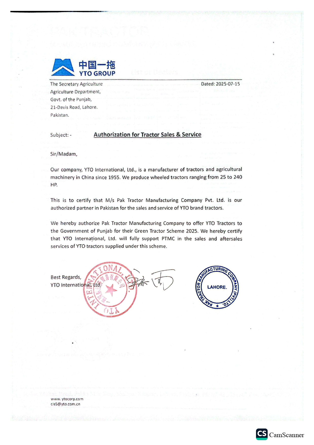 YTO Group Corporation, founded in 1955, is an experienced agriculture machinery and construction machinery manufacturer in China. Through decades of experience and our consistent efforts, now we provide a comprehensive line of products, including wheeled tractor, crawler tractor, combine harvester, wheel loader, forklift truck, and more.